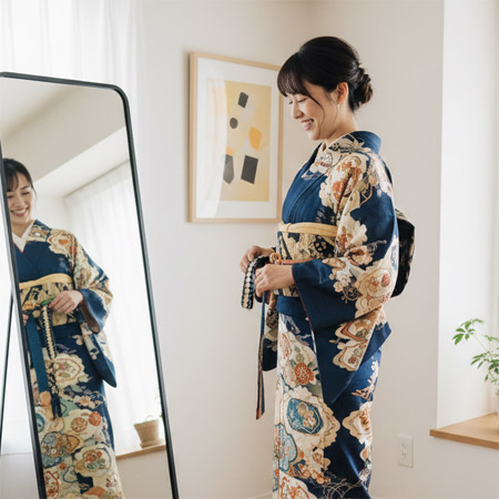 どうしても迷ったときは、顔色が明るく見える色合いや、写真映えしやすい華やかな柄を選ぶことがおすすめです。実際に羽織って鏡で全身のバランスを確認しながら、自分らしさを表現できる着物を選びましょう。