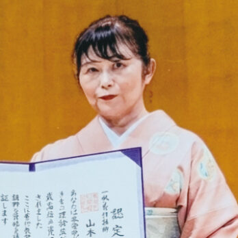 「認定式」では感動と感謝を満面の笑みで臨み、最高の一瞬でした。紆余曲折あったからこそ今があります。お着物の世界は奥の深い「生涯学習」だと思っております。 「彩の集い」を目標に精進して参りたいと思っております。どうぞ宜しくお願い申し上げます。